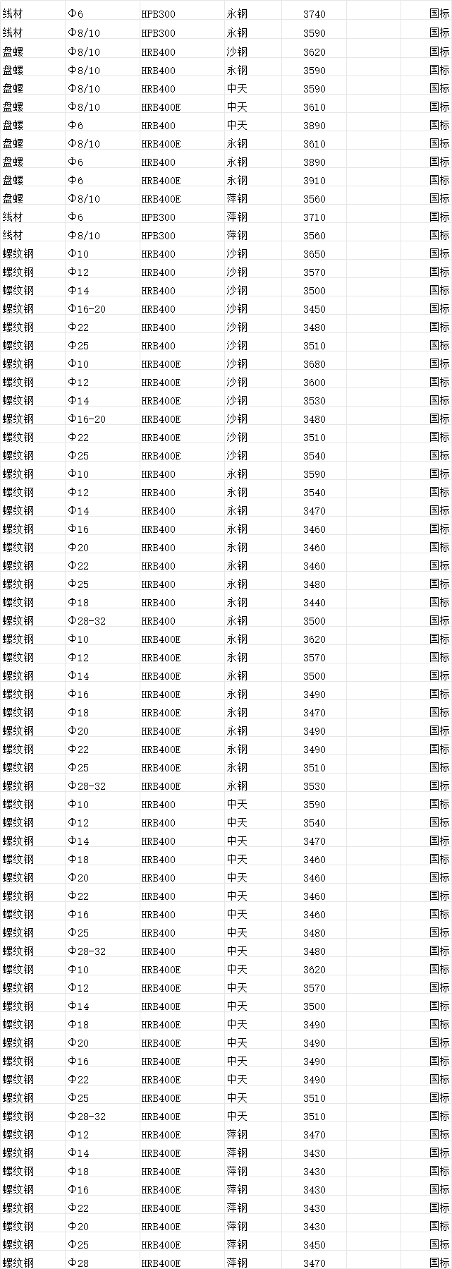 2025年10月6日(10.15)舟山錦海倉鋼材建筑材料價格
